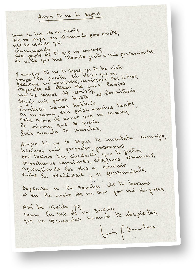 Aunque tú no lo sepas. Manuscrito del poema de Luis García Montero